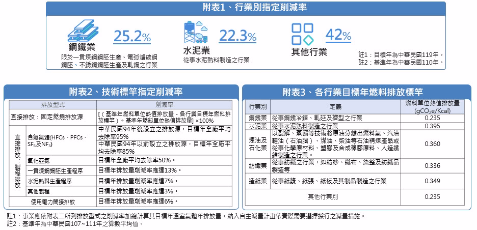 - 行業別指定削減率:以110年為基準年,此目標參酌國際間科學基礎減量目標(SBT)訂定,適用優惠費率A。